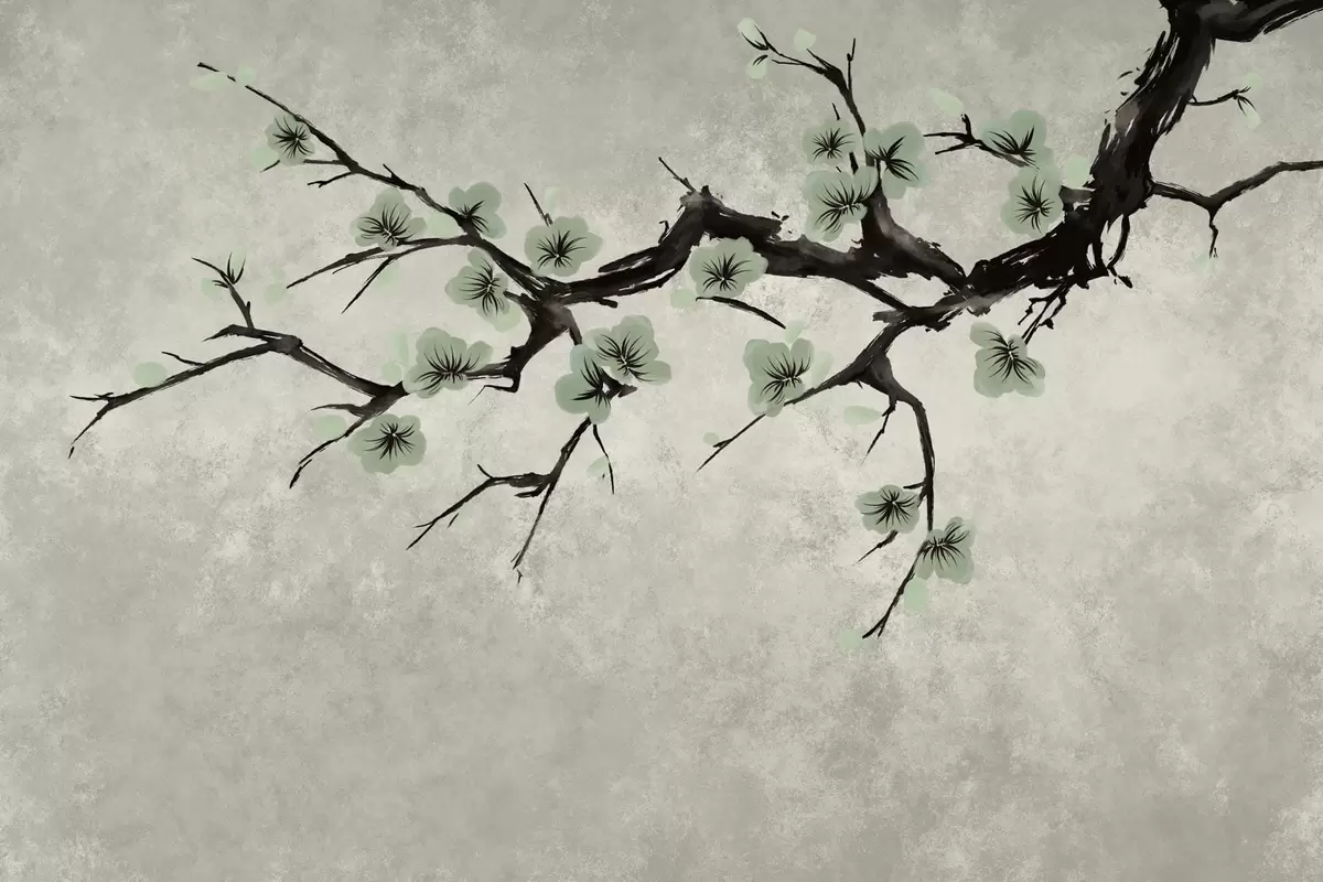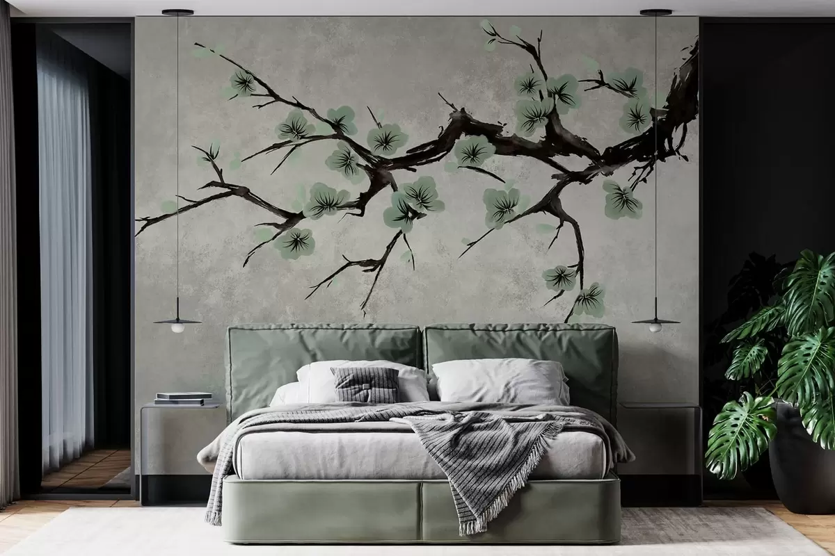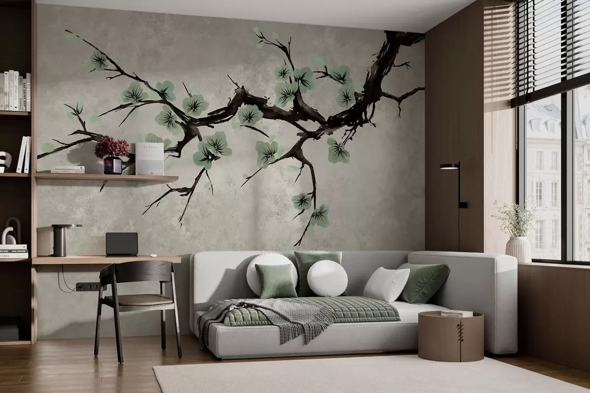 Fototapet Ramură cu flori verzi în nuanțe calme Nr. w05425v2