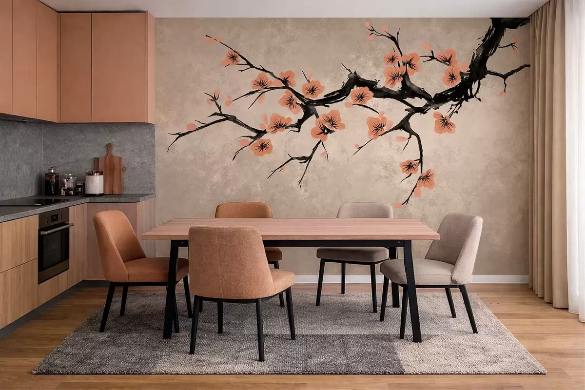 Fototapet Ramură cu flori de piersic pe un fundal texturat Nr. w05425v3