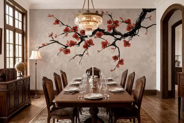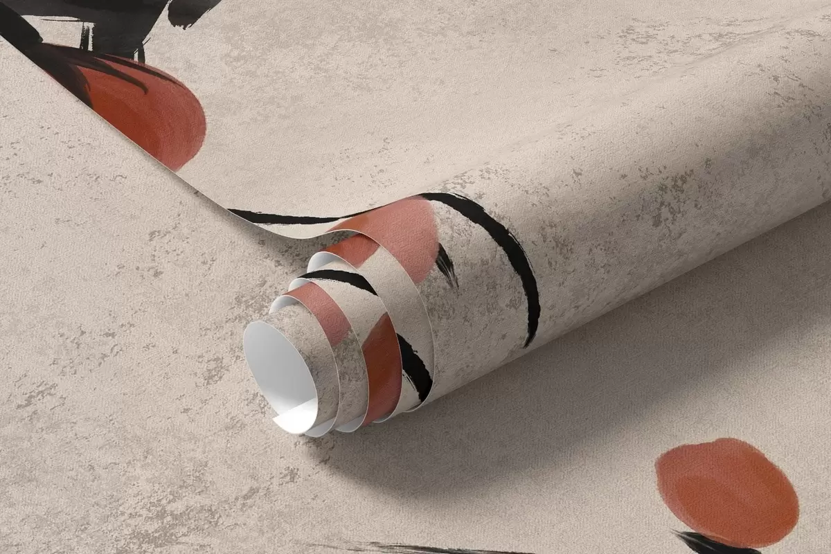 Fototapet Ramură înflorită în stil oriental pe fundal bej Nr. w05425v4