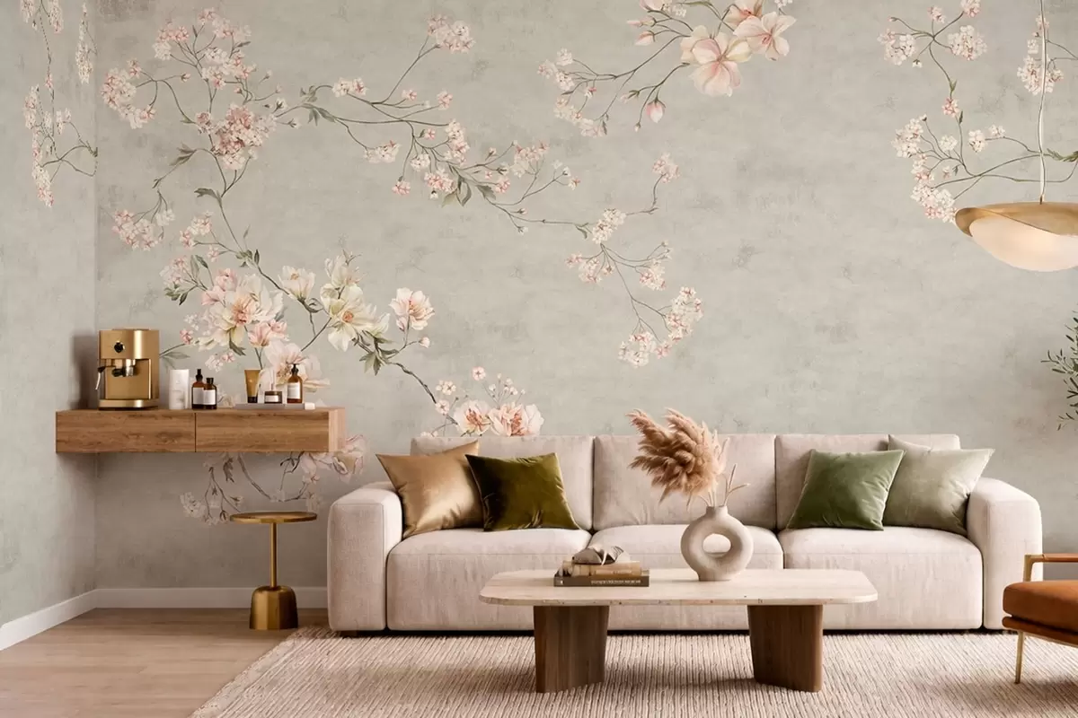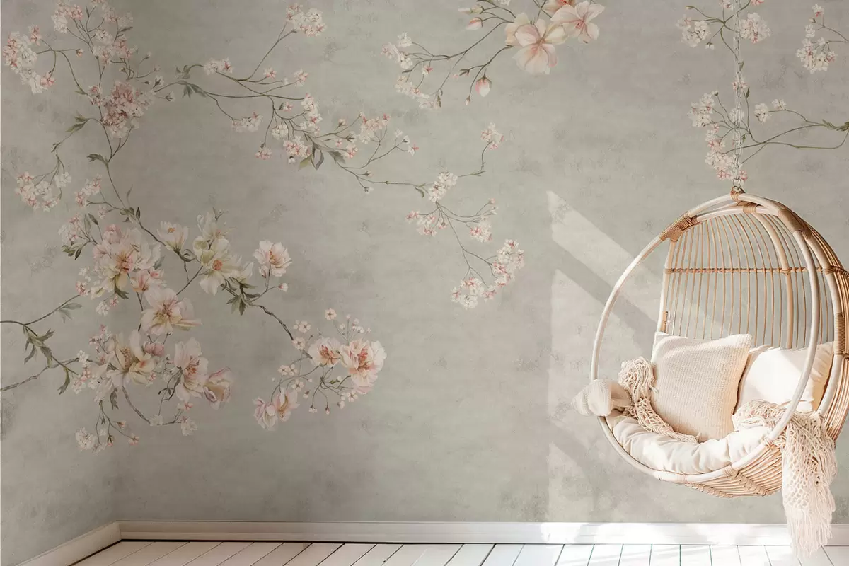 Fototapet Ramuri florale în stil chinoiserie pe fundal gri Nr. w05427v1