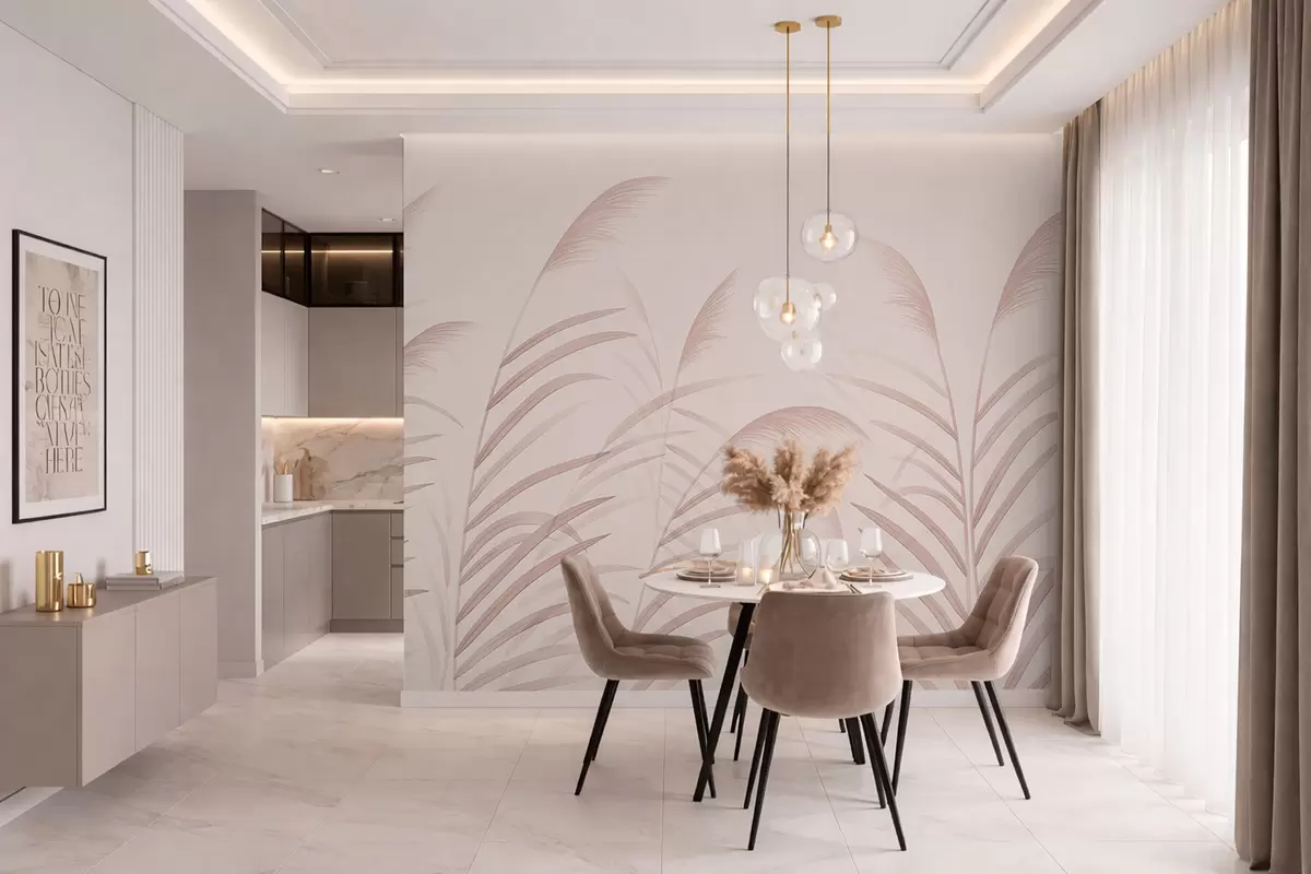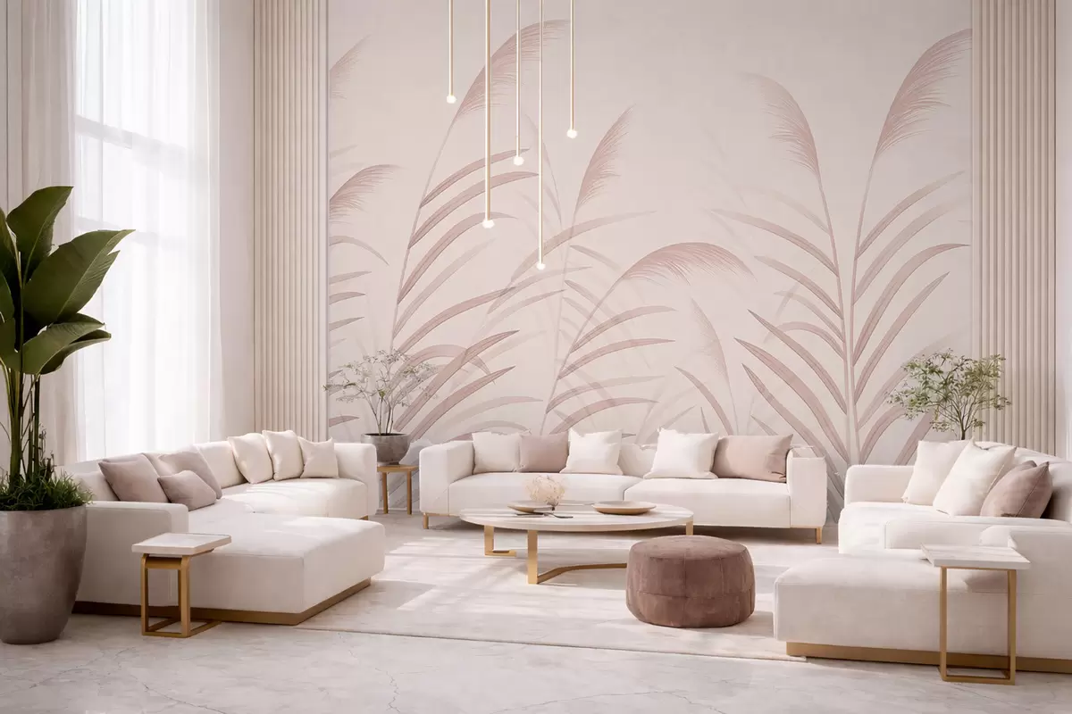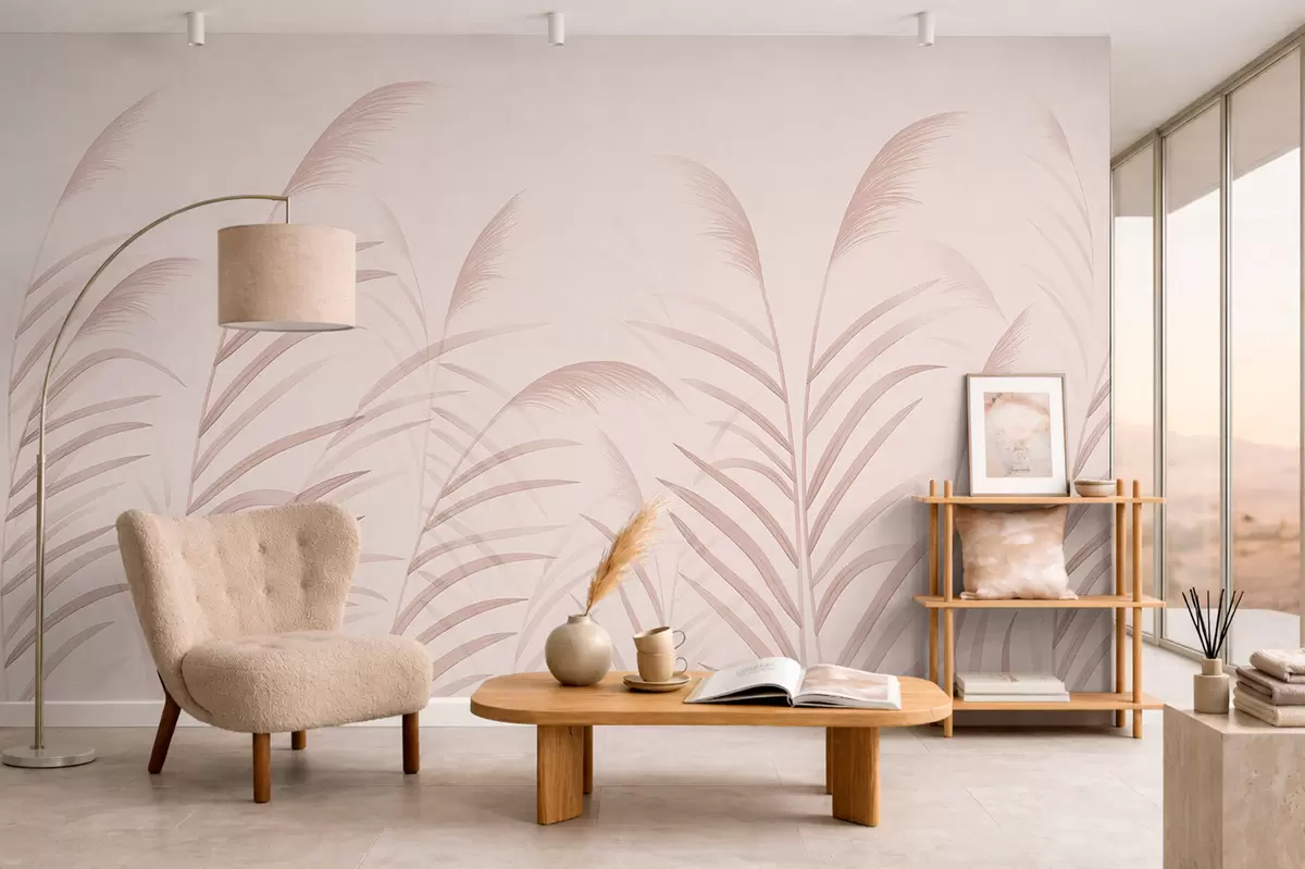 Fototapet Ierburi minimaliste în nuanțe delicate de roz Nr. w05432v2