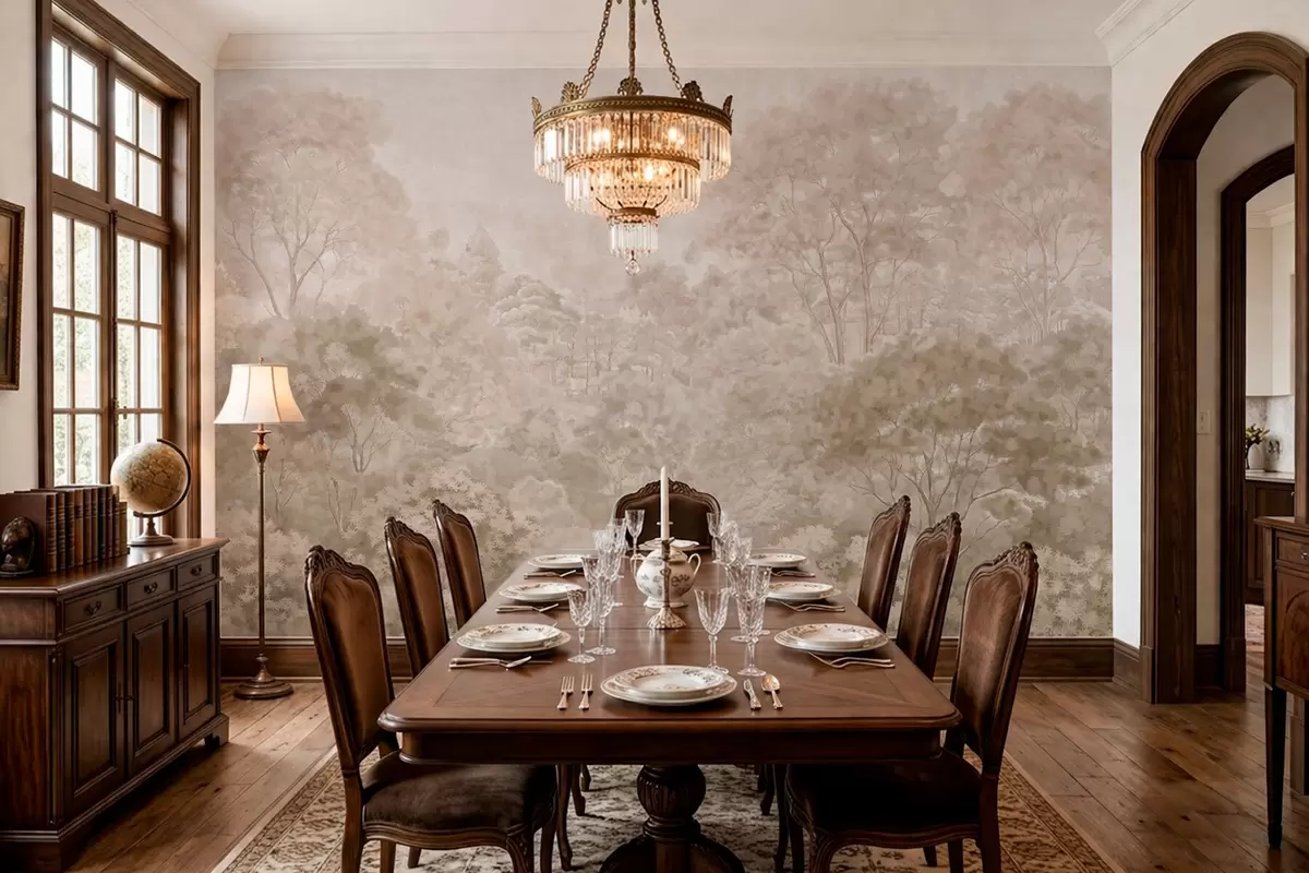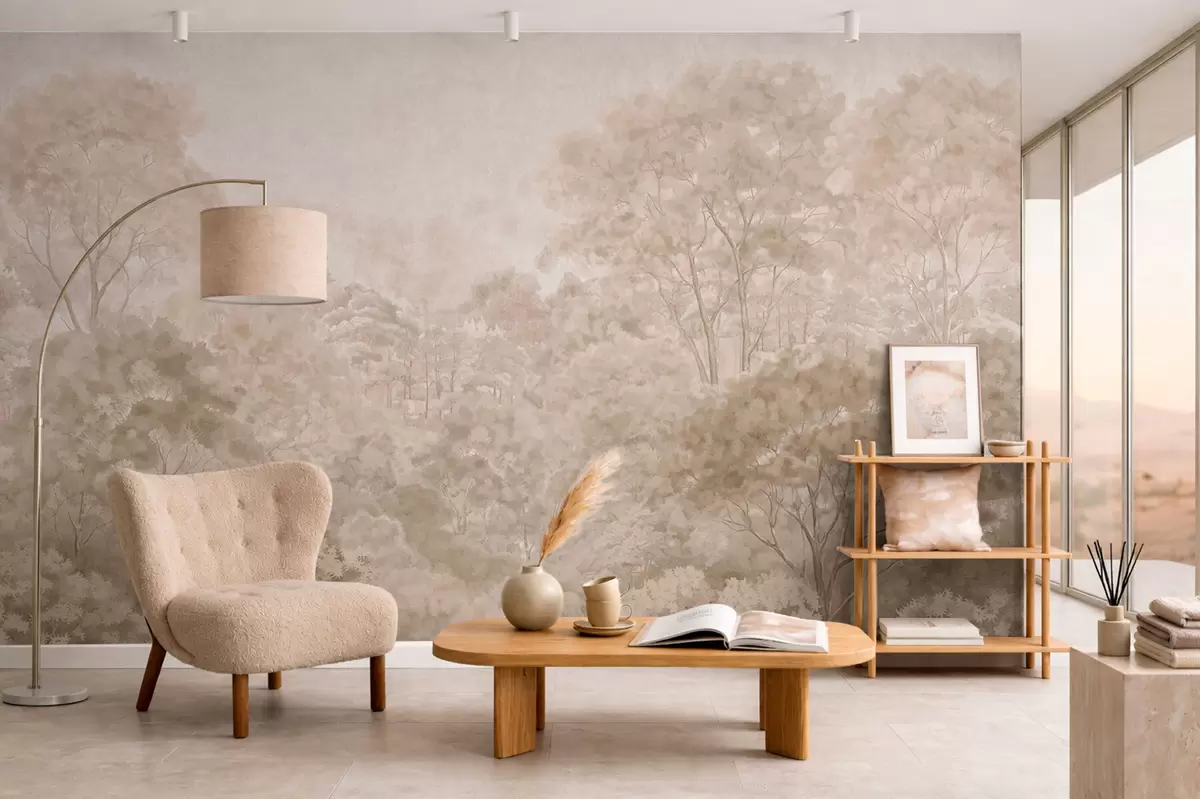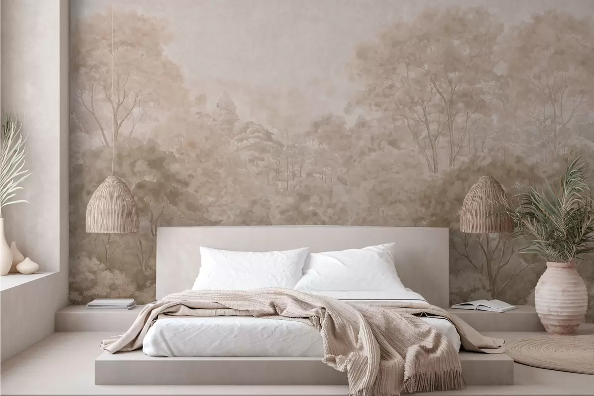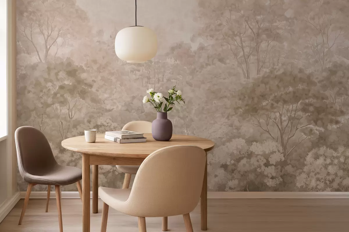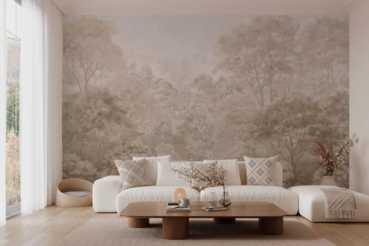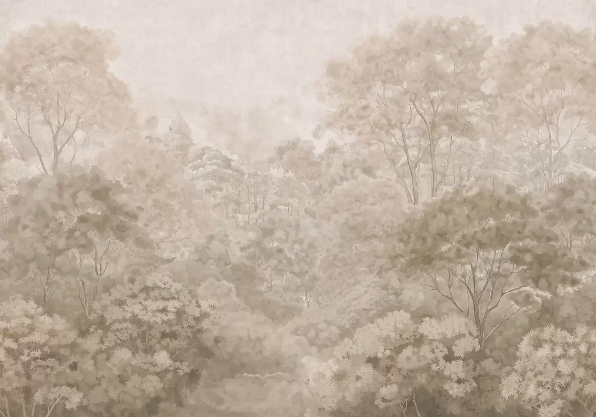 Fototapet Peisaj forestier de epocă în nuanțe calde de bej Nr. w05433v1