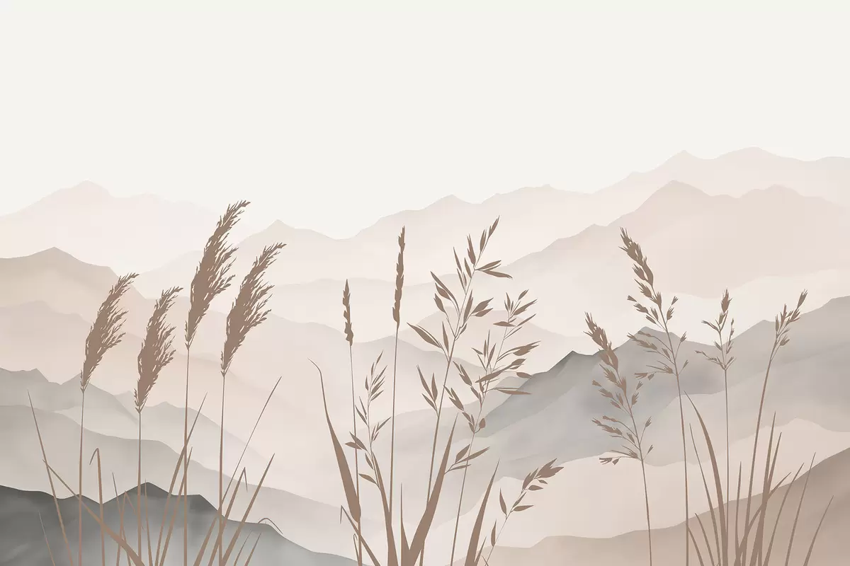 Fototapet Siluete de iarbă pe fundalul munților Nr. w05501v1