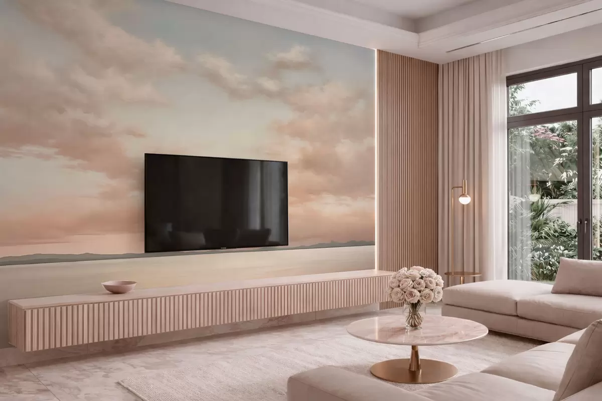 Fototapet Minimalism: orizontul mării cu nori în culori pastelate Nr. w05516