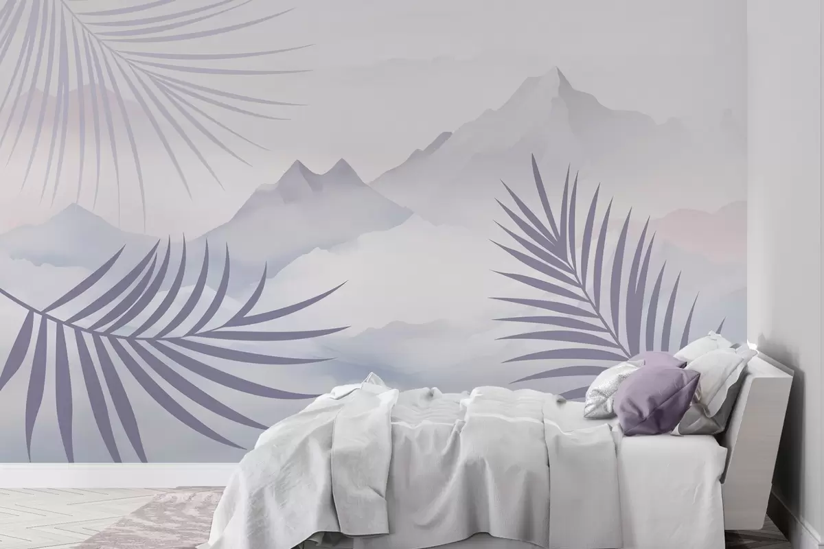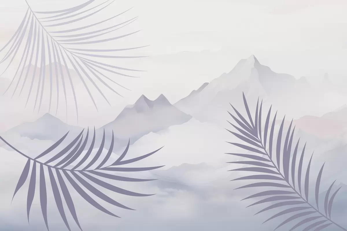 Fototapet Frunze de palmier pe fundalul munților Nr. w05548