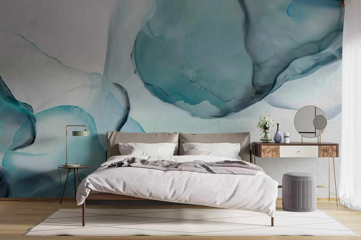 Fototapet Artă fluidă abstractă albastră și albă, care seamănă cu apă curgătoare și cerneală Nr. w07927