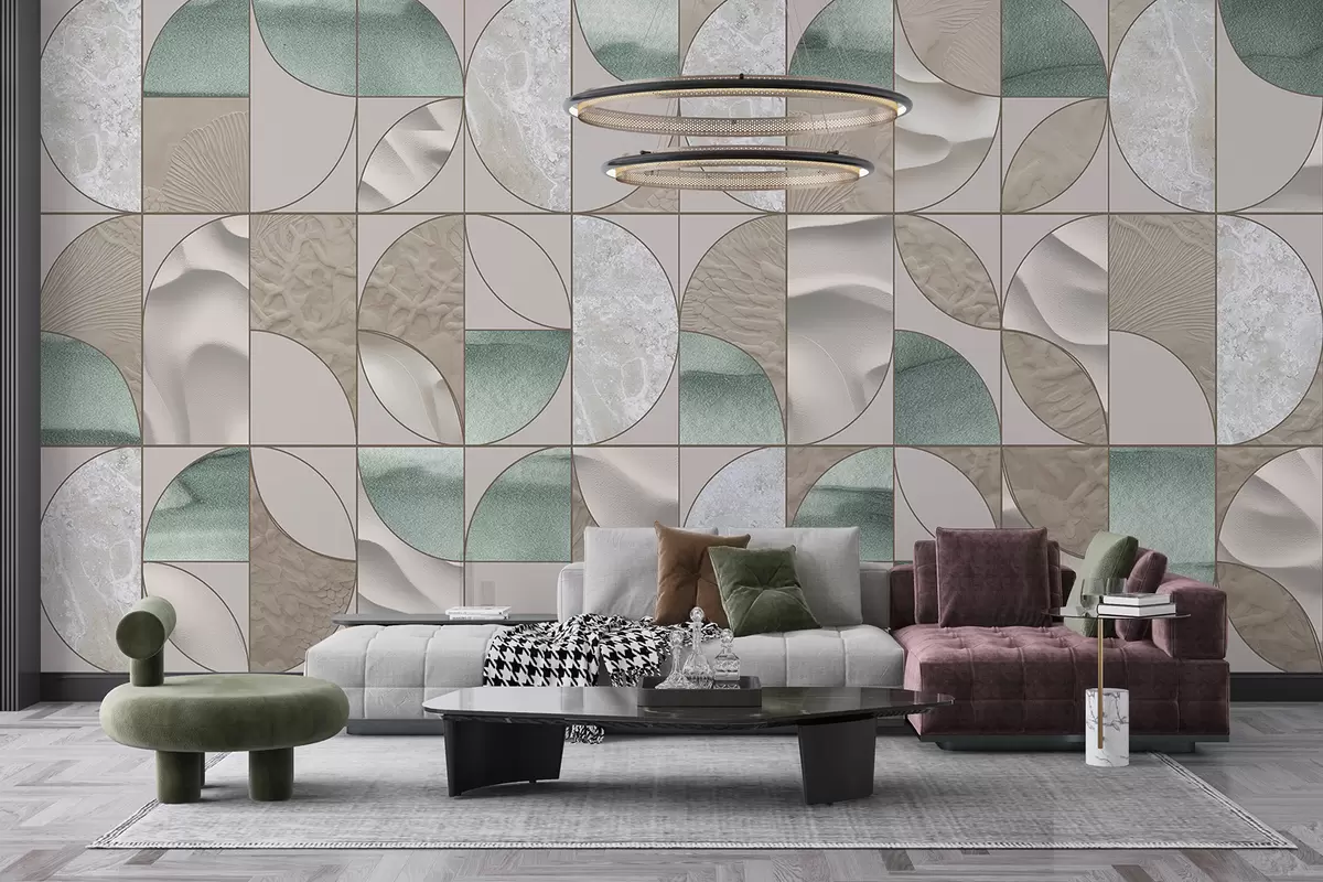 Fototapet Un model geometric de texturi verzi, bej și alb aranjate într-un design abstract repetitiv Nr. w07928
