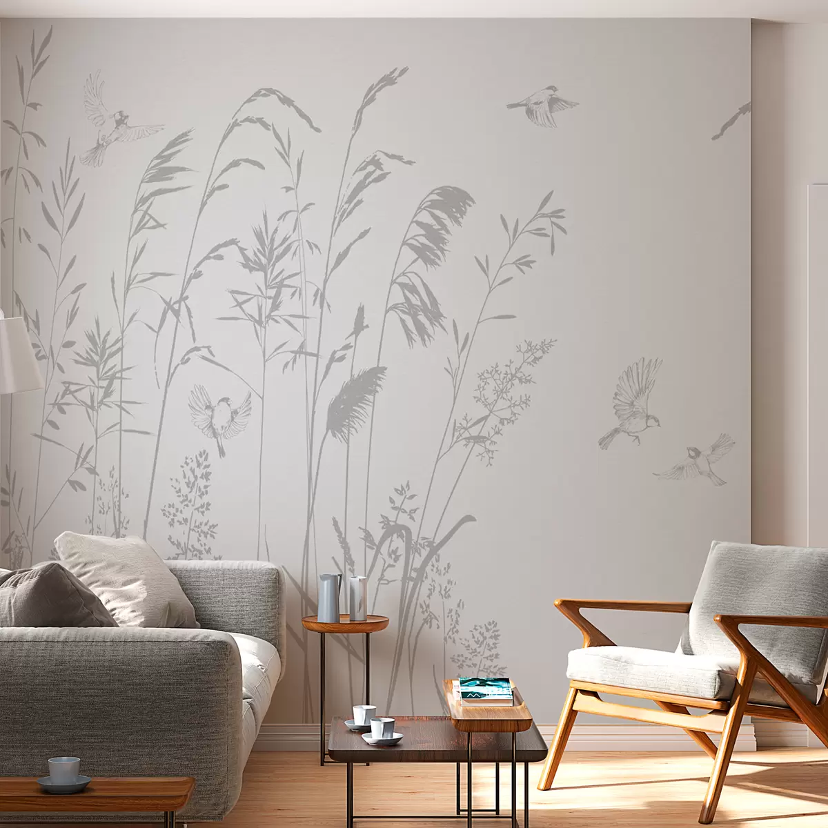 Fototapet Plante și păsări mici natura minimalism gri culoare Nr. w08172v1