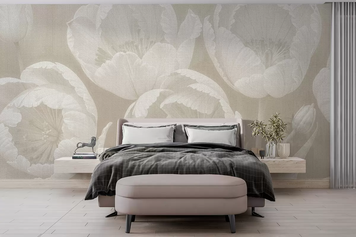 Fototapet Desen de lalele albe cu moale, panza texturat roz blurred fundal minimalism monocrom imprimare Nr. w08193v1