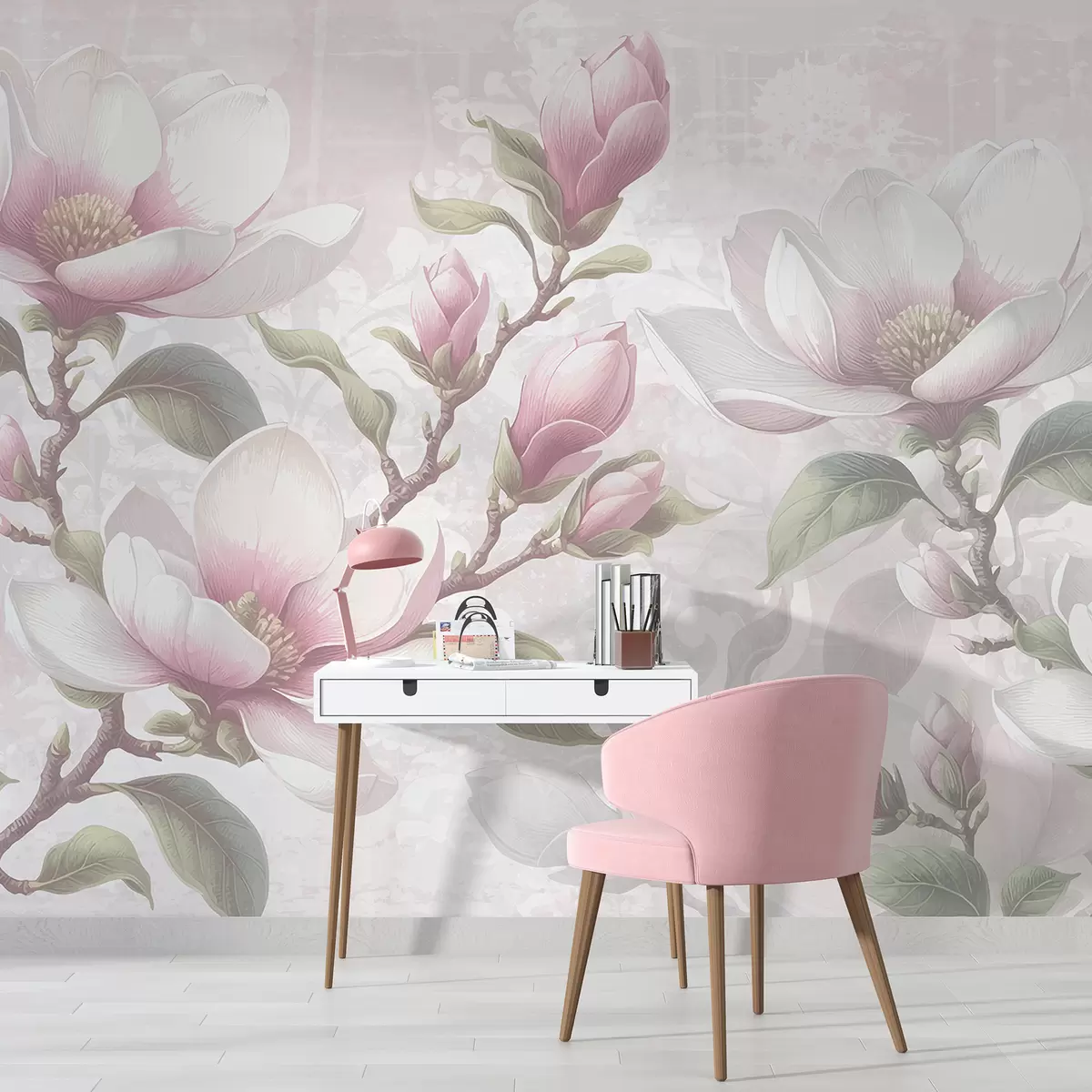 Fototapet Delicate flori roz magnolia în plină floare pe un fundal blând, neclar Nr. w08216