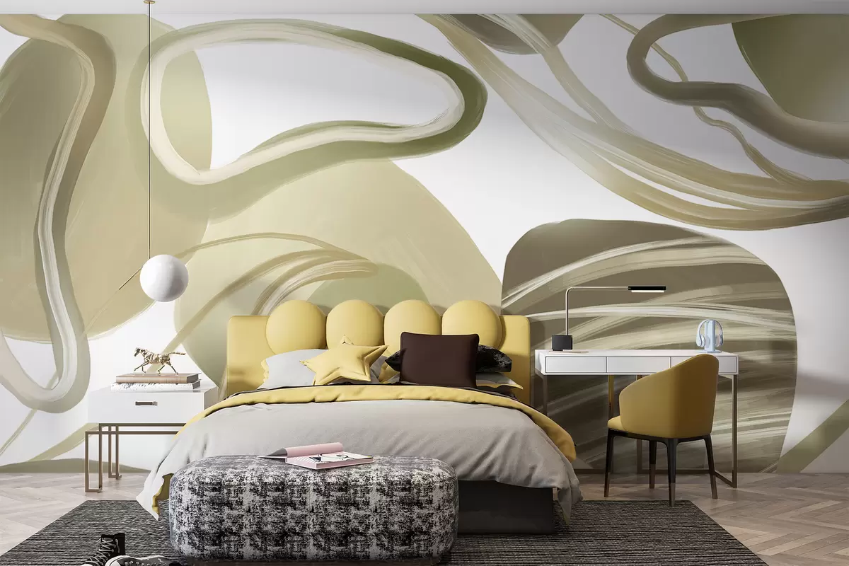 fototapet Forme și curbe abstracte în nuanțe de bej care creează o compoziție dinamică și fluidă w08279