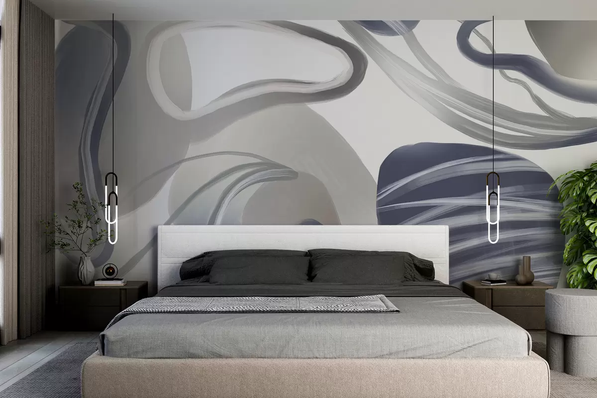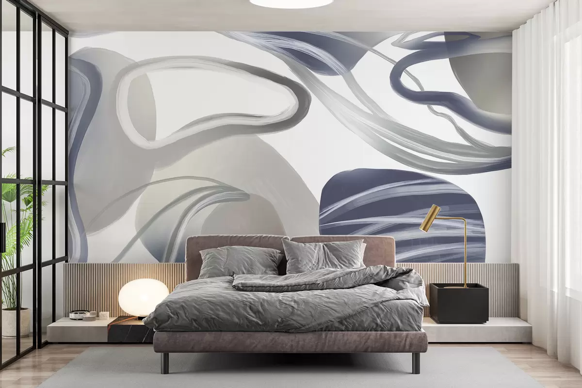 Fototapet Forme și curbe abstracte în nuanțe de albastru închis care creează o compoziție dinamică și fluidă Nr. w08279v1