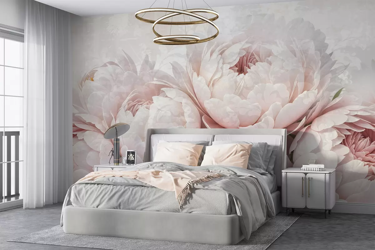 Fototapet Bujor roz moale cu petale delicate pe un fundal vintage cu textură ușoară Nr. w08312