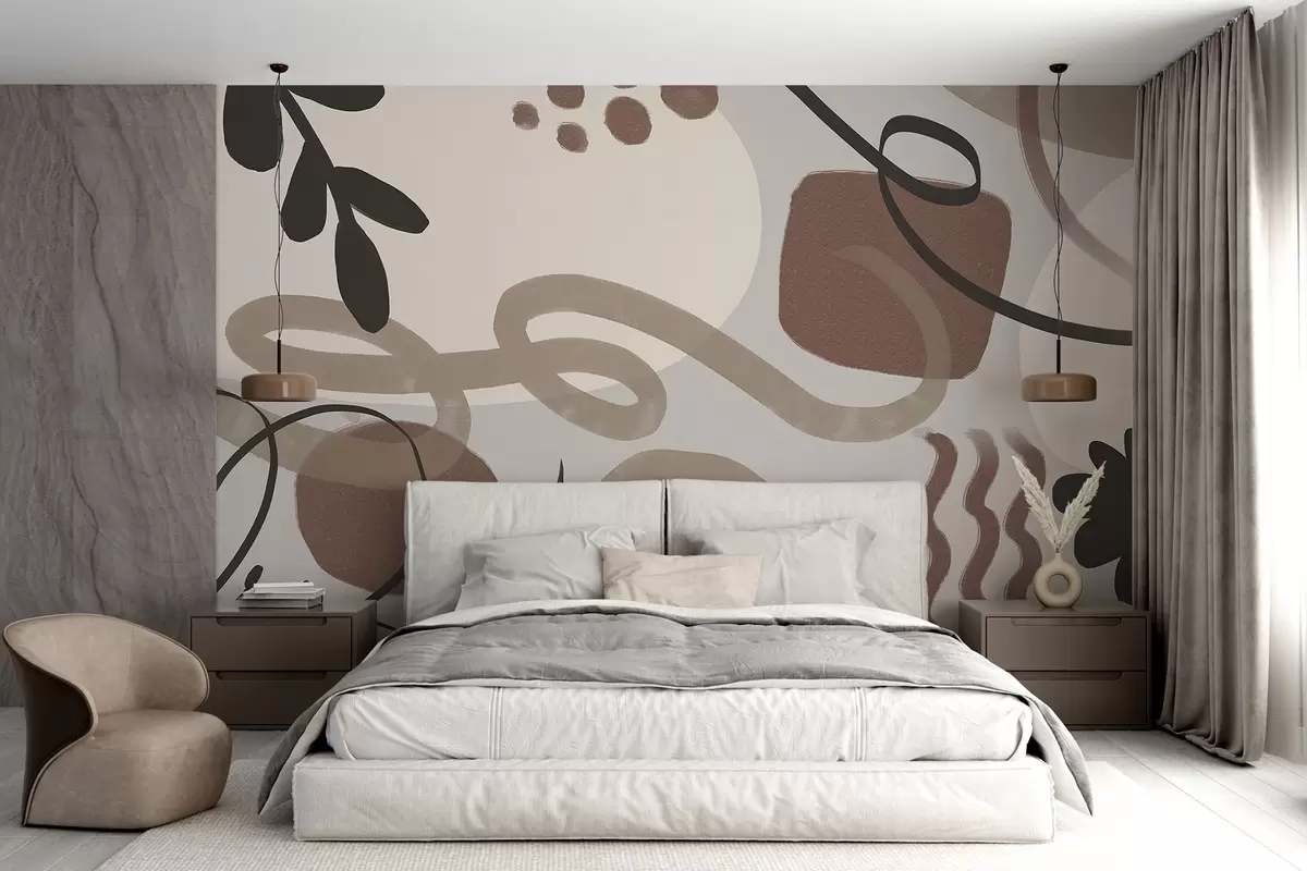 Fototapet Imprimeu modern minimalist abstract texturat cu forme în tonuri pământii de maro, bej și negru Nr. w08384