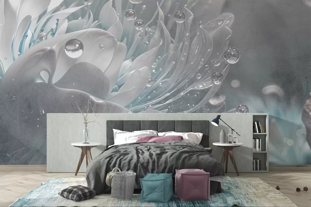 Fototapet Un prim-plan al unei flori de bujor albastru cu picături de apă pe petalele sale delicate, creând o atmosferă moale Nr. w08402v1