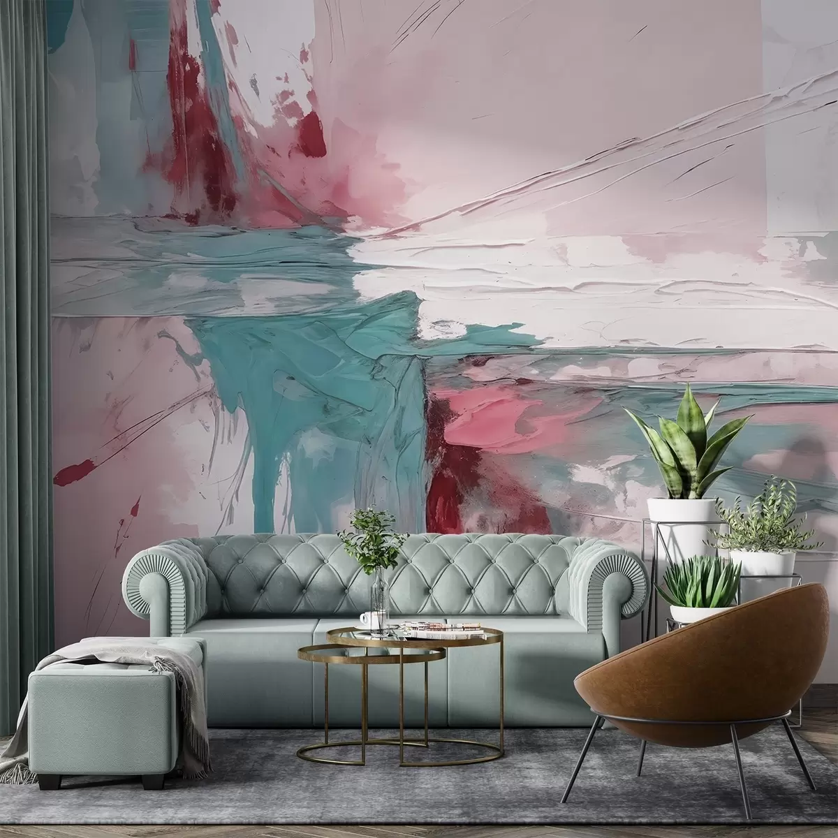 Fototapet Compoziție minimalistă de artă abstractă cu tușe îndrăznețe de vopsea roz, albastră și albă Nr. w08414v1