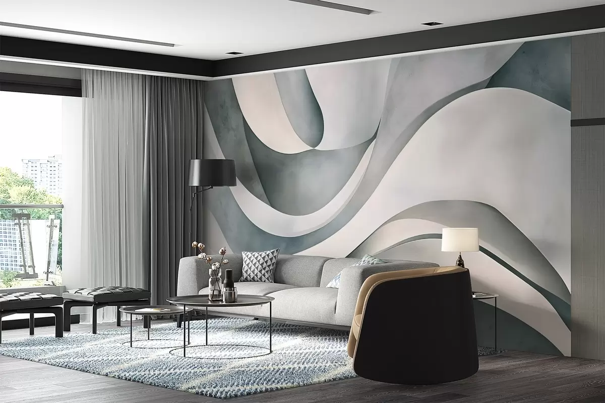 Fototapet Forme și forme curbate albe, albastre și gri, creând o imprimare abstractă texturală modernă minimalistă Nr. w08439v1