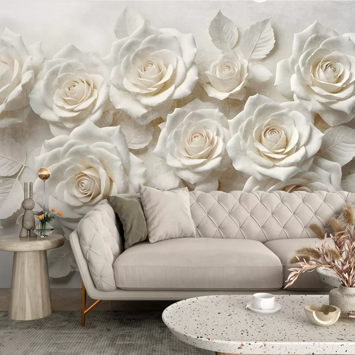 Fototapet O vedere de aproape a mai multor trandafiri albi cu petale moi, delicate pe fundal alb Nr. w08448
