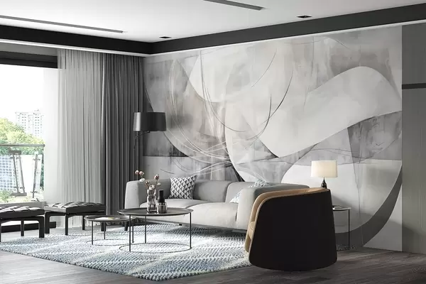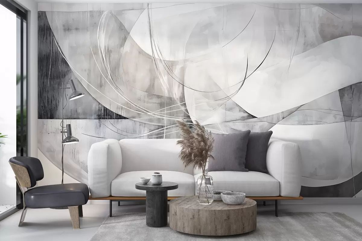 Fototapet Forme abstracte și forme în nuanțe de alb, gri și negru pe un fundal cu textură neclară Nr. w08461v1