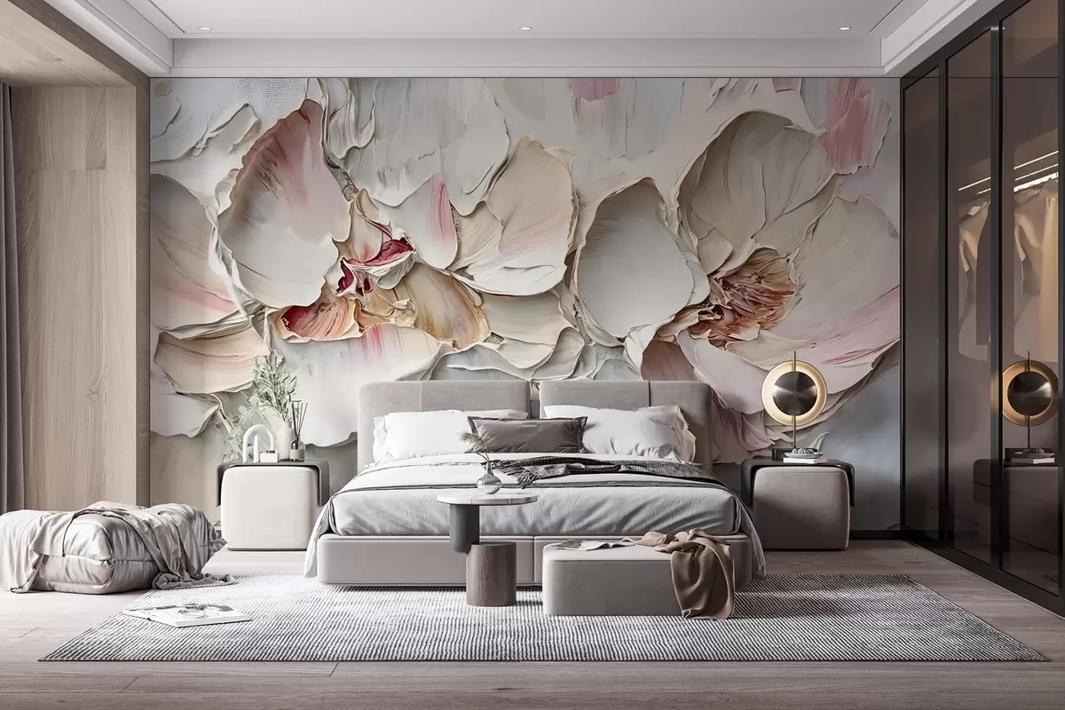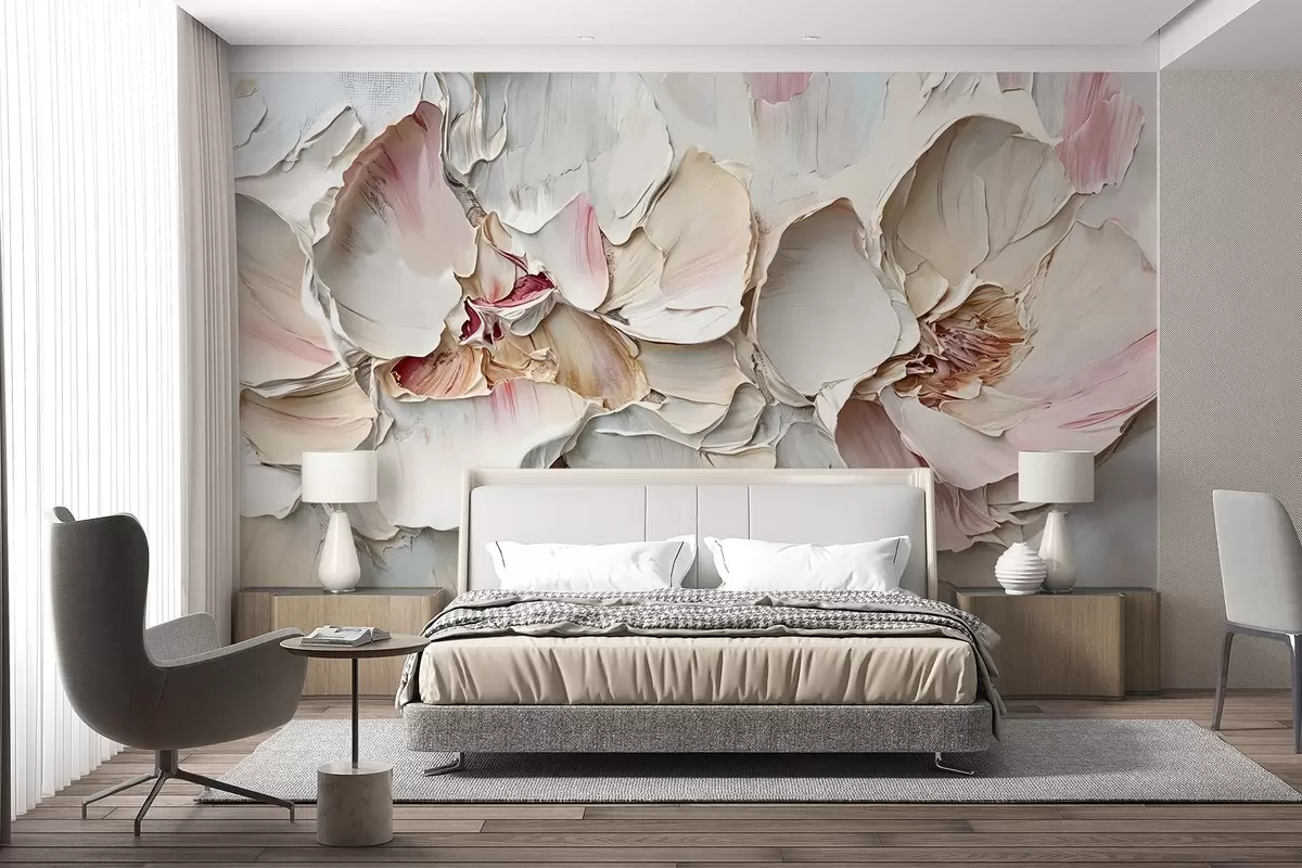 Fototapet Flori delicate, roz pal, cu petale moi, stratificate, pe un fundal surd, texturat impasto imitație pictură în ulei Nr. w08467