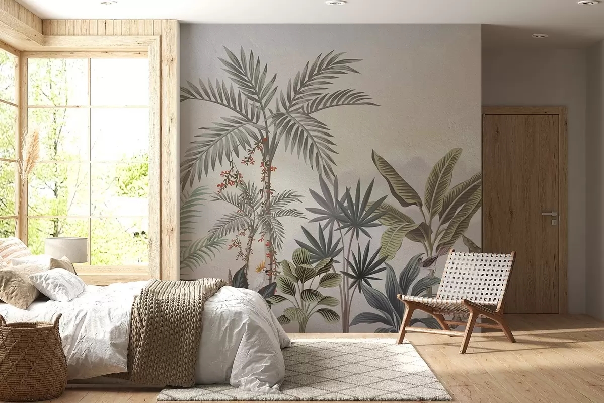 Fototapet Junglă tropicală cu palmieri și păsări colorate Nr. w08496