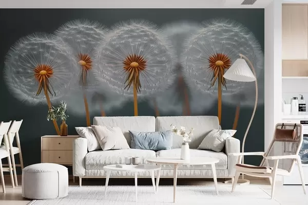 Fototapet Păpădii aerisite pe un fundal natural întunecat Nr. w08498