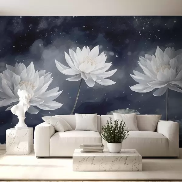 Fototapet Trei flori de lotus pe un fundal întunecat Nr. w08506