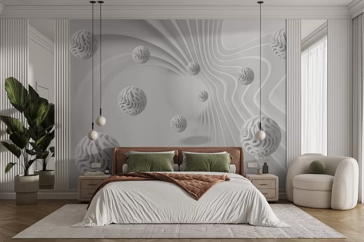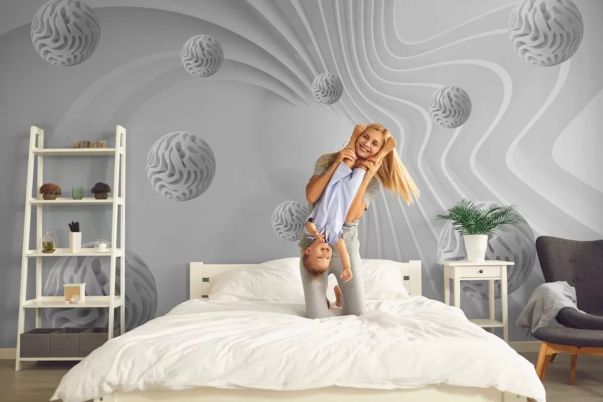 Fototapet abstracție gri 3D cu sfere și efect de adâncime Nr. w08553