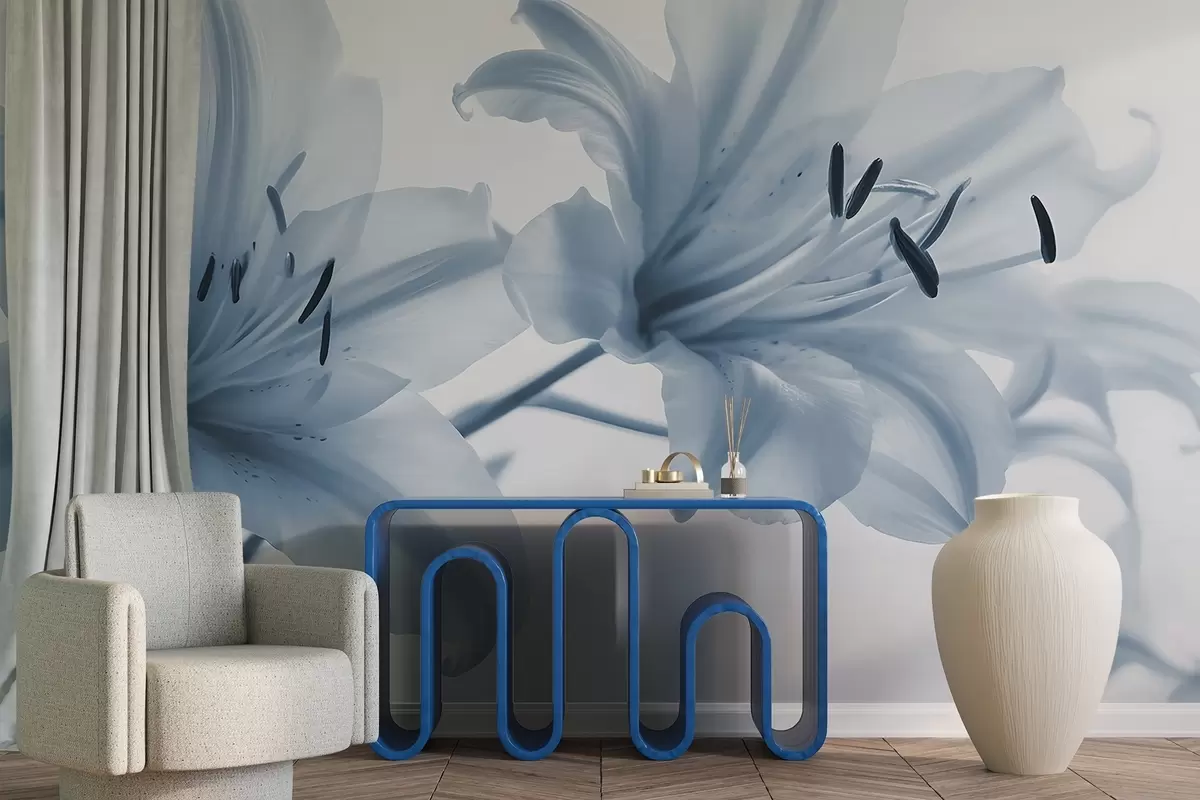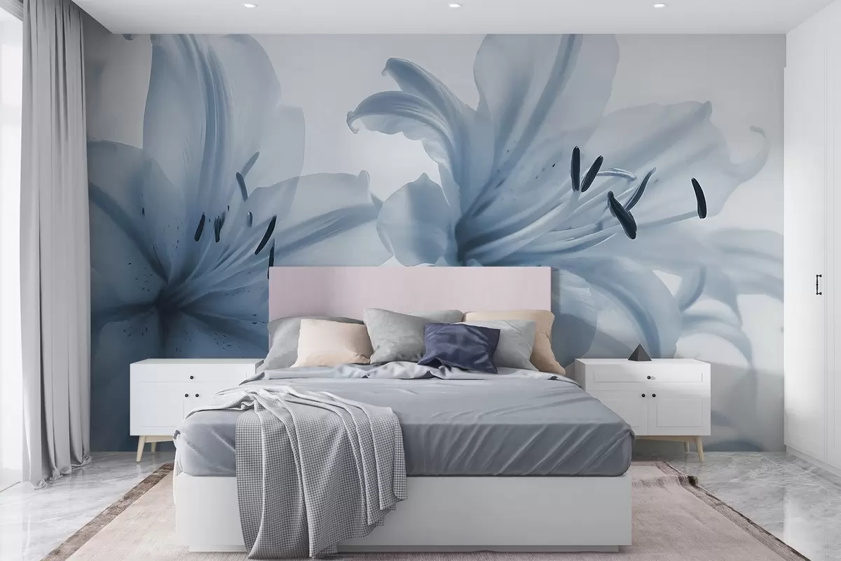 Fototapet Soft focus close-up de albastru minimalist flori de crin pe un fundal luminos Nr. w08586