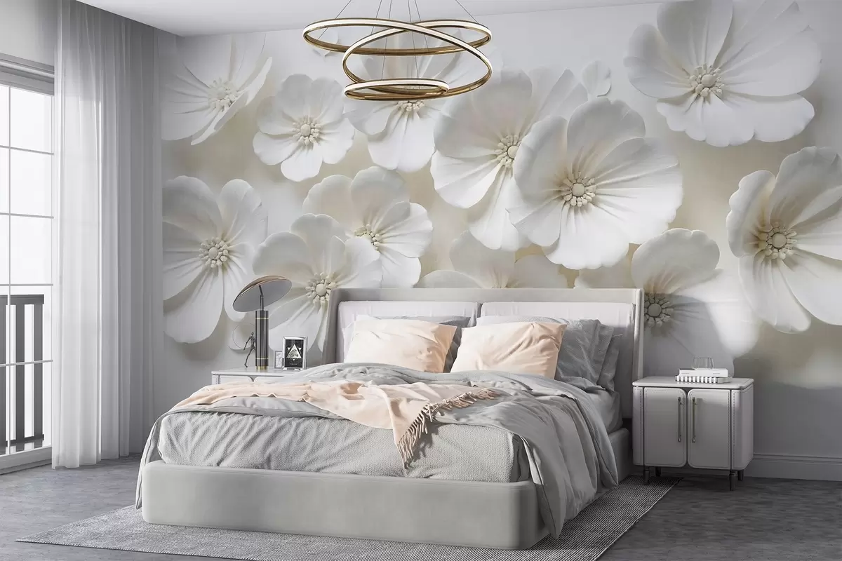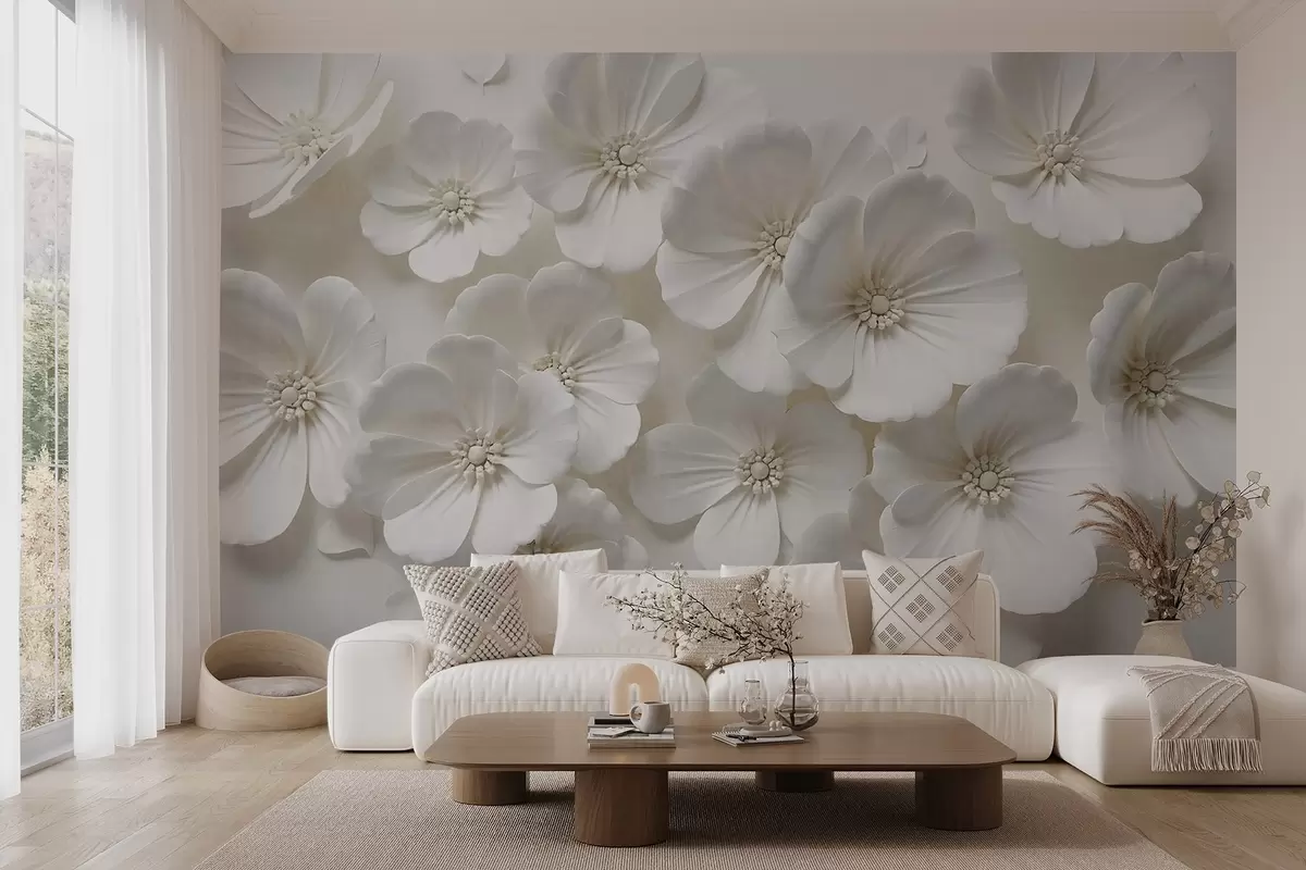 Fototapet Flori albe cu petale și centre delicate pe un fundal deschis Nr. w08587