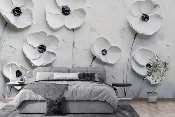 Fototapet Elegant gri flori cu imitație brushstroke Nr. w08632