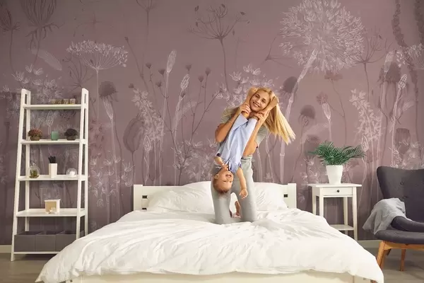 Fototapet Păpădii aerisite și flori sălbatice în stil acuarelă în tonuri roz Nr. w08637v1