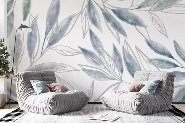 fototapet Delicate albastru și gri frunze pastelate texturate , creând o compoziție botanică senină și minimalistă w08642v1
