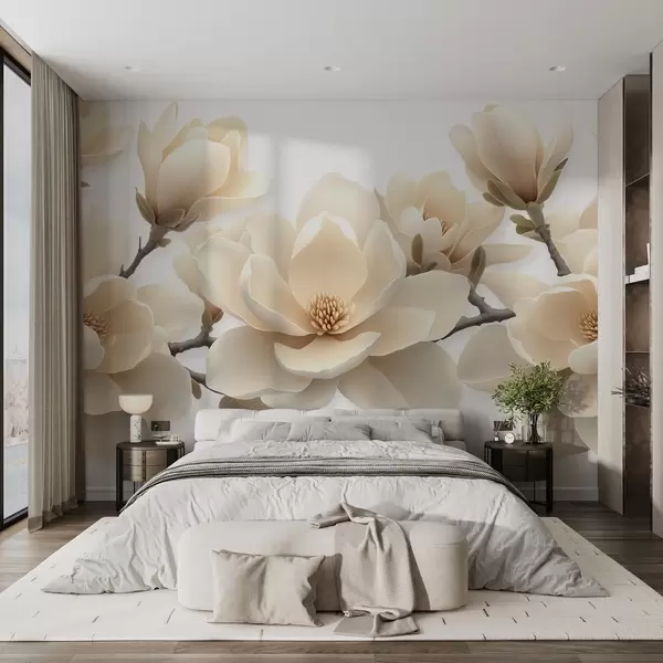 Fototapet Flori de magnolie bej înflorit într-un ton cremos pe un fundal alb Nr. w08692