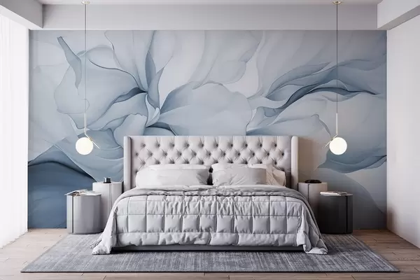 Fototapet Flux de petale florale abstracte forme translucide și stratificate în culori pastelate, în nuanțe de albastru Nr. w08701v2