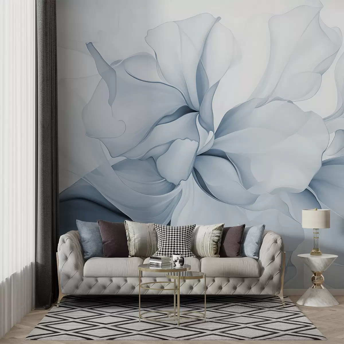 Fototapet Flux de petale florale abstracte forme translucide și stratificate în culori pastelate, în nuanțe de albastru Nr. w08701v2