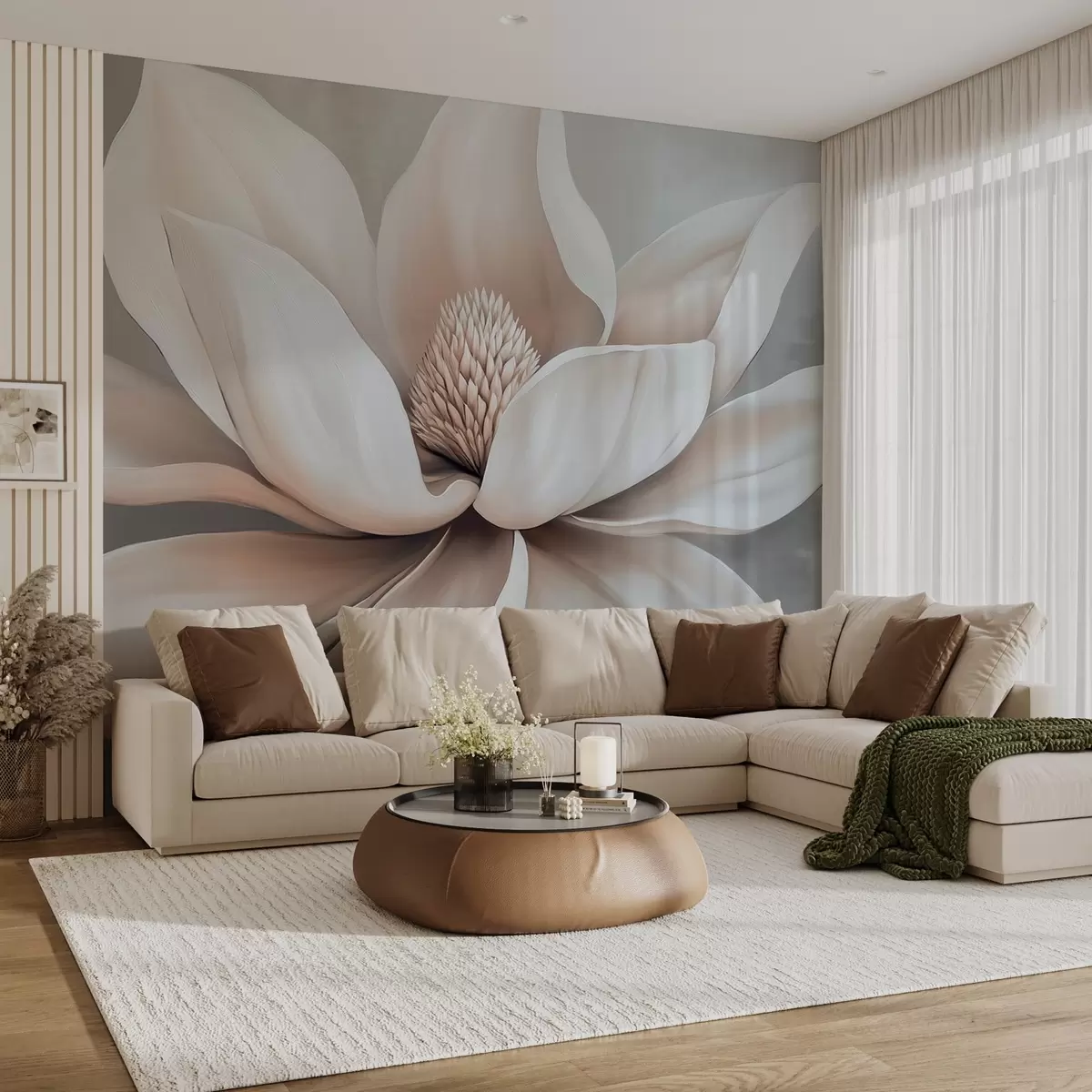 Fototapet Floare elegantă de magnolie cu petale lungi și netede pe un fundal gri moale Nr. w08705