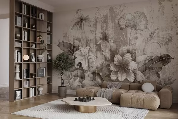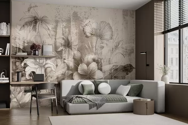 Fototapet Design vintage cu flori și plante exotice Nr. w08767v2