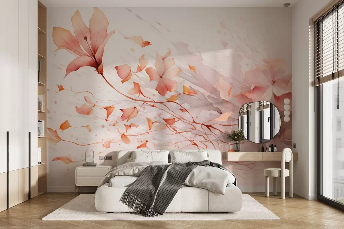 Fototapet O floare cu petale care cad într-un stil acuarelă în tonuri calde Nr. w08821v1