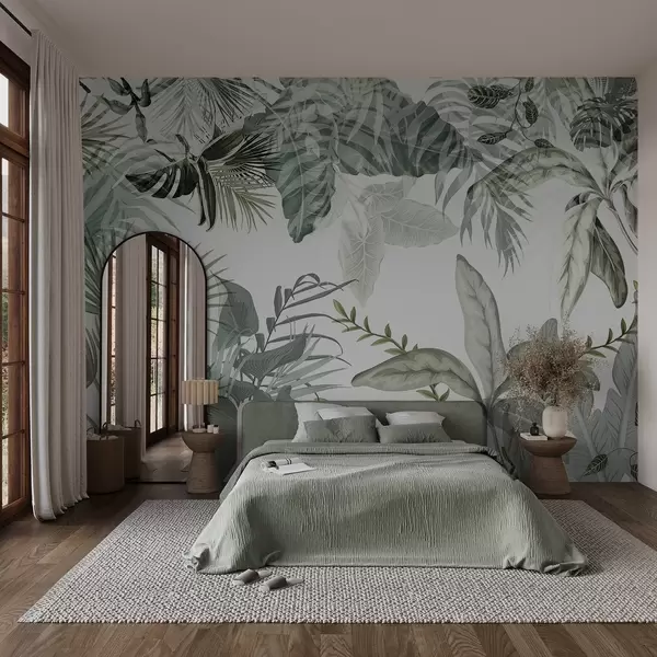 Fototapet Frunze tropicale transparente în nuanțe de verde pe un fundal alb Nr. w08822
