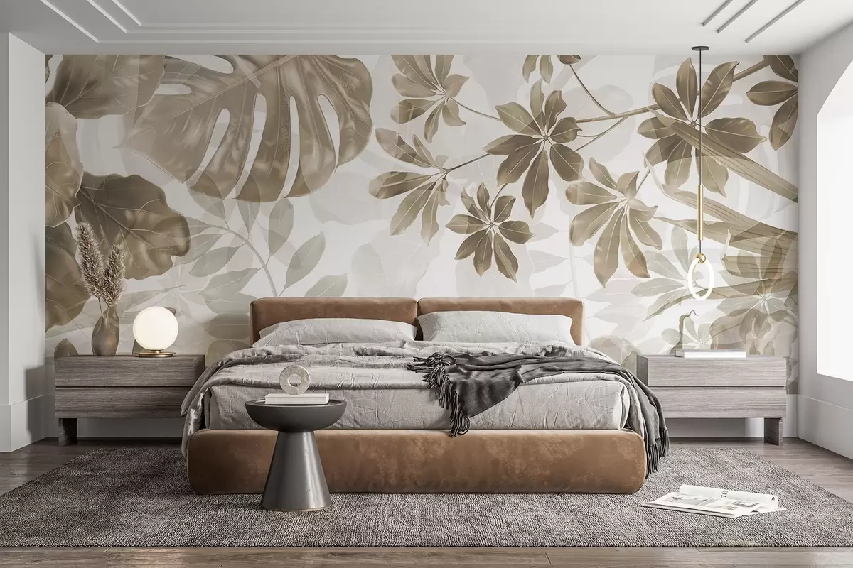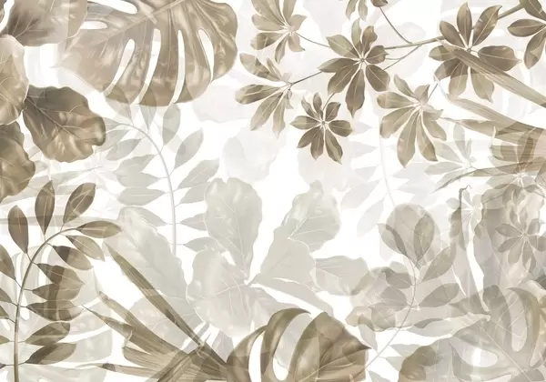 Fototapet Tropical bej frunze delicate pe un fundal alb Nr. w08824