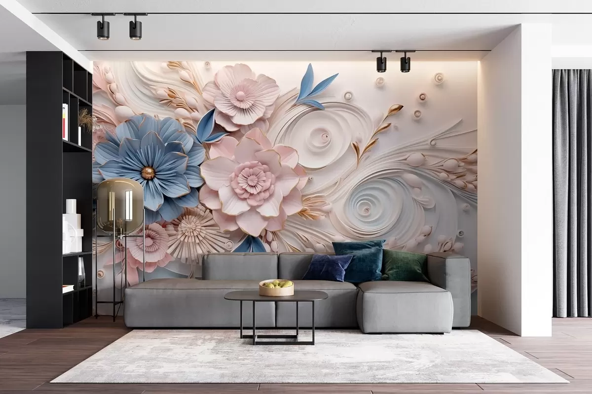 Fototapet O compoziție florală delicată în tonuri de roz și albastru, cu un fundal moale în relief Nr. w08847