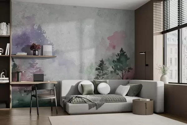 Fototapet Pădure, imitație de acuarelă cu stropi roz Nr. w08862