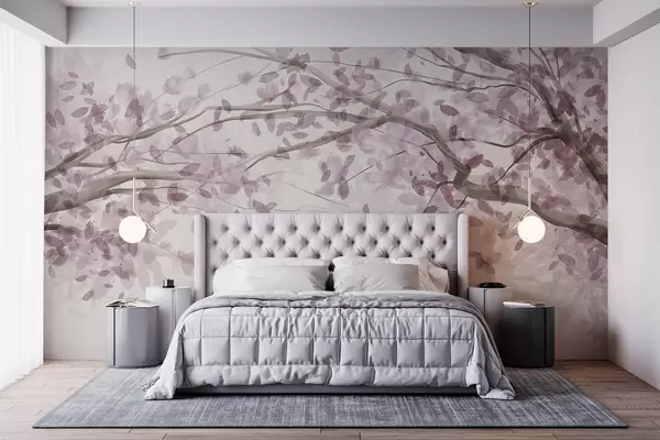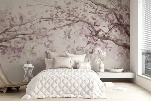 Fototapet Ramuri de flori cu frunze roz, culori moi, detalii delicate, stil acuarelă, pe un fundal deschis Nr. w08867
