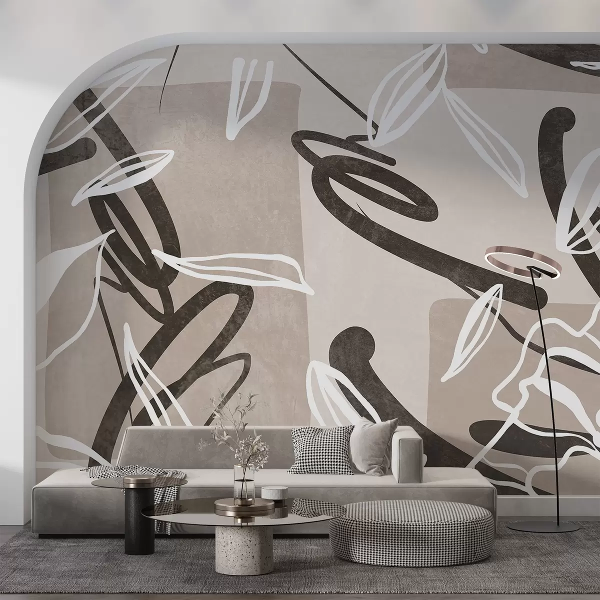 Fototapet Design abstract texturat modern și minimalist cu elemente florale într-o paletă de culori bej neutru Nr. w08888