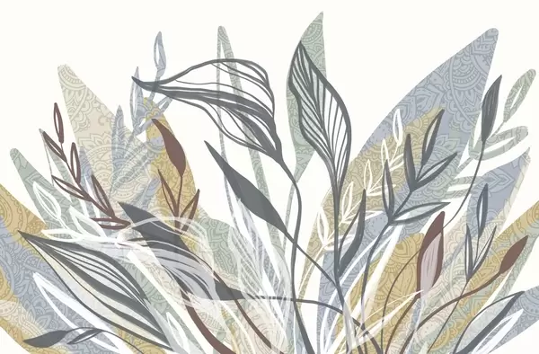Fototapet O colecție de frunze de diferite culori și dimensiuni, unele cu linii de artă, pe un fundal alb Nr. w08893