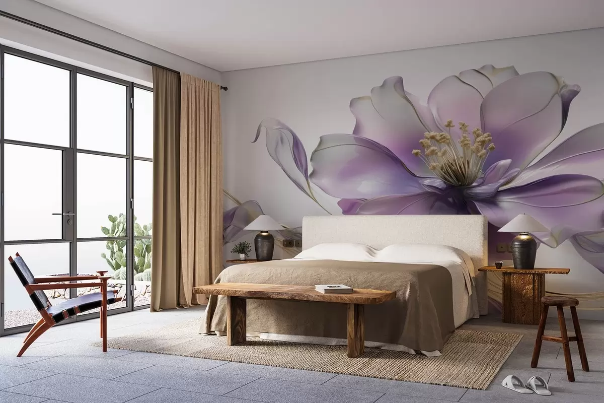 Fototapet Floare abstractă mare pe perete în nuanță de liliac Nr. w08902v1