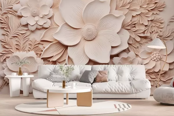 Fototapet Flori și frunze bej cu efect de relief Nr. w08933