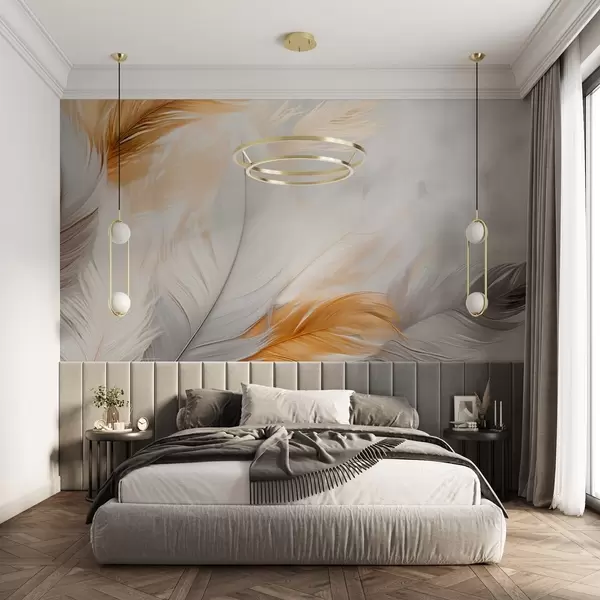 Fototapet Pene gri și galbene pe un fundal gri Nr. w08937