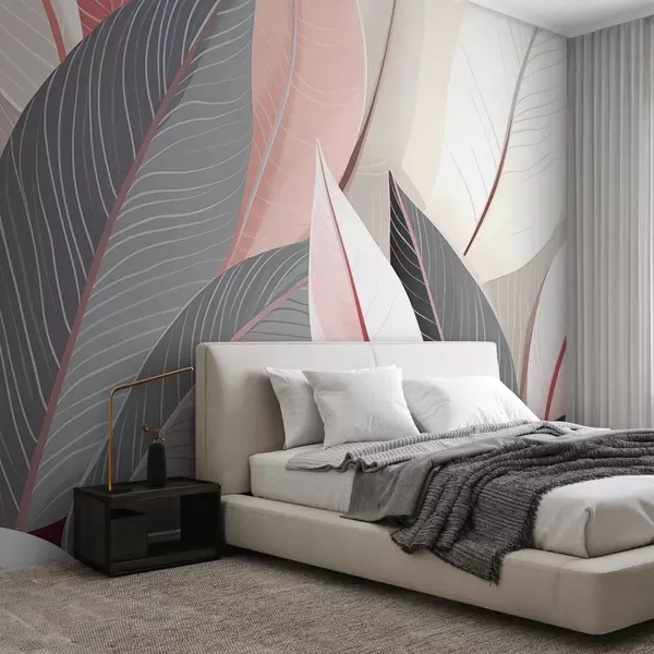 Fototapet Close-up de frunze în tonuri gri și roz Nr. w08944v1